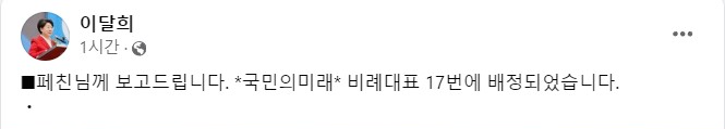 국민의미래 이달희 비례대표 당선권 조정 이유