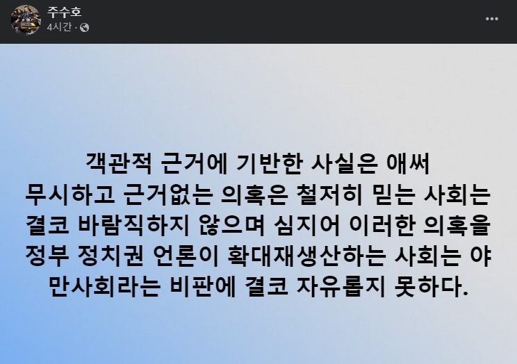 사건에 대한 여론이 악화되자 주 위원장은 SNS에 '후회와 속죄의 입장문'을 게시했습니다.